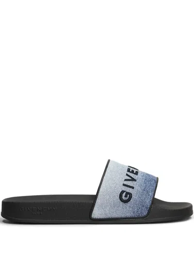 A signature logo is embroidered across the single denim strap of this Italian-crafted slider that keeps you comfortable all day with a molded footbed. Cushioned, molded footbed Textile upper/synthetic lining and sole Made in Italy Designer Shoes