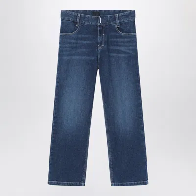 Givenchy jeans in blue washed denim cotton blend, featuring a front zip closure with a hook and logo tag, elasticized waist with belt loops, back logo patch, and five classic pockets including one back pocket with contrasting logo lettering embroidery.. Fabric I: 98% Cotton - 2% Elastane / Lining: 100% Cotton / Details: 50% Polyester - 50% Polyamide.
