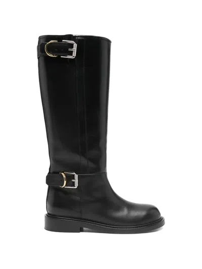 Pre-owned Buckled Leather Boots In Black