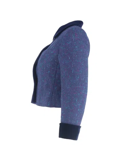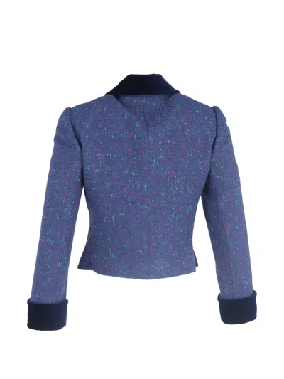 Pre-owned Buttoned Tweed Cropped Jacket In Blue