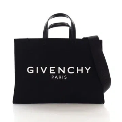 Givenchy Tote From the 2022 Collection Black Canvas Silver-Tone Hardware Leather Trim Includes Dust Bag | Givenchy Canvas G-Tote Medium in Black