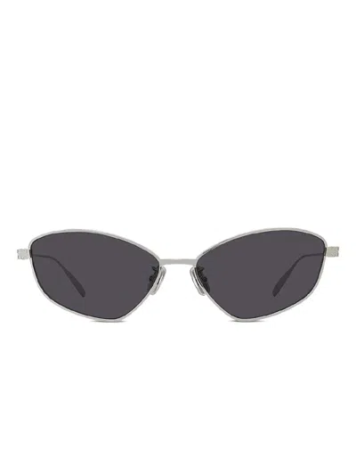 silver-tone nose pads cat-eye frame straight arms These glasses come with a protective case.