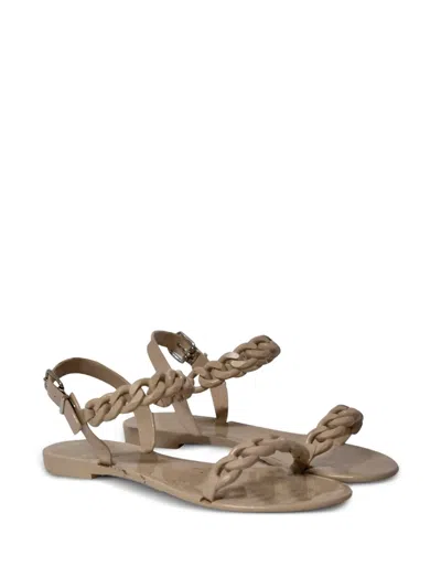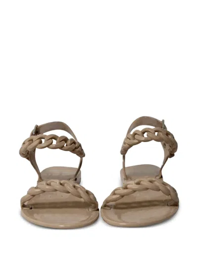 beige chain straps buckle fastening flat sole This piece comes complete with a protective dust bag. Condition: GOOD. This previously owned and used item is in good condition with minimal signs of use. This may include fading of material or plating and scratches.
