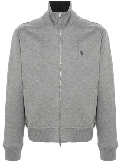 light grey cotton blend jersey texture mélange effect high neck long sleeves ribbed trim signature 4G motif two press-stud fastening side pockets front two-way zip fastening