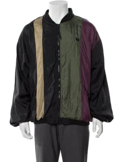 Givenchy Windbreaker Black, Green & Purple Colorblock Pattern Woven Lining Slit Pockets Fit: Outerwear by Givenchy typically fits small, consider taking a size up. | Givenchy Colorblock Pattern Windbreaker in Black/Green/Purple, Men's XL