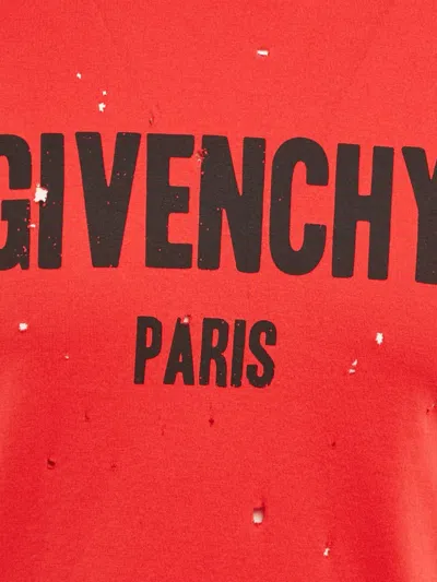 red cotton distressed detailing short sleeves crew neck front logo Condition: EXCELLENT. This previously owned item is in near-perfect condition with no signs of damage or use.