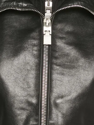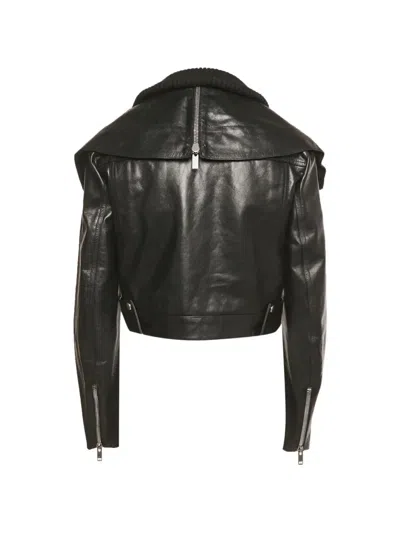 black rib-knit leather construction zip fastening wide collar Condition: GOOD. This previously owned and used item is in good condition with minimal signs of use. This may include fading of material or plating and scratches.