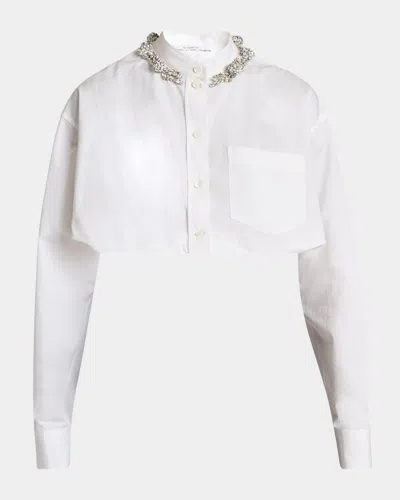 GIVENCHY Crystal Button-down Crop Balloon Shirt In White
