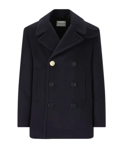 GIVENCHY Double-breasted Coat Featuring Front Pockets In Blue