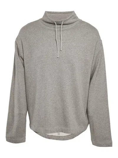 grey cotton mock neck drawstring detail long sleeves curved hemline Condition: GOOD. This previously owned and used item is in good condition with minimal signs of use. This may include fading of material or plating and scratches.