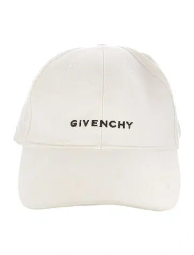 White cotton-blend Givenchy embroidered baseball cap with silver-tone hardware and adjustable belt closure at back. | Givenchy Embroidered Baseball Cap in White