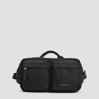 Givenchy Essential U Black Polyamide Belt Bag. Crafted From Black Nylon, Silver-Tone Hardware, Top Handle, Zip Fastening On The Top, Two Zip Pockets On The Front, Metal Logo Detail, Back Adjustable Web Strap, One Main Compartment.