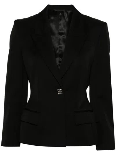 Structured jacket in grain de poudre wool. Peak lapels. Closure with 4G Liquid metal button in silver finish. Buttoned cuffs. A breast pocket. Two flap pockets on the front. Satin lining with 4G motifs. Classic cut