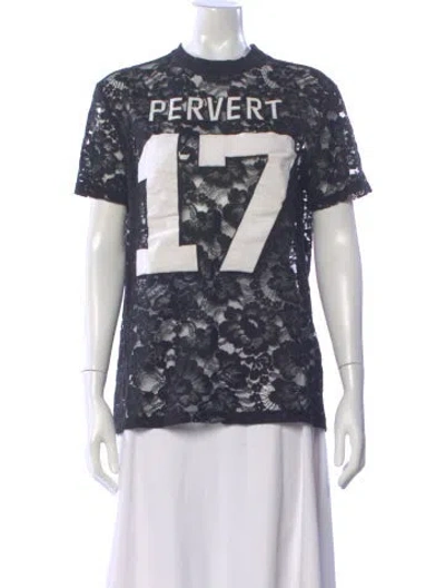Givenchy Sweater Blue Lace Pattern Lace Trim Embellishment Short Sleeve with Crew Neck Concealed Zip Closure at Side Designer Fit: Sweaters by Givenchy typically fit true to size. | Givenchy Lace Pattern Crew Neck Sweater in Blue, Women's US4, FR36 | S