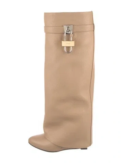 Givenchy Leather Knee-High Boots Neutrals Semi-Pointed Toes Wrap-Around Straps Designer Fit: Boots by Givenchy typically run a half size small. Unfortunately, due to restrictions, this item may not be eligible for shipping in all areas. | Givenchy Leather Boots in Neutrals, Women's IT 36 | 6
