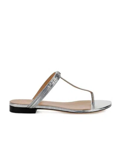 Silver Elba flat sandals, ankle straps, fine knotted leather straps, with smooth metal textured GIVENCHY letters.