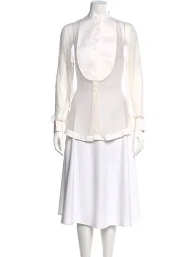 Givenchy Blouse Neutrals Long Sleeve with Collar Button Closure at Front Fit: Tops by Givenchy typically fit true to size. | Givenchy Long Sleeve Blouse in Neutrals, Women's M