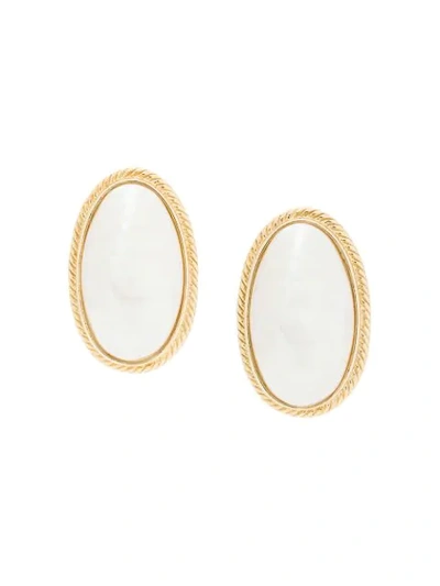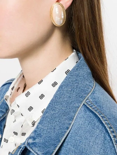 18kt gold plated brass oval shape earrings from Givenchy Pre-Owned featuring faux-pearl embellishment, a clip on fastening and an engraved logo. Circa 1980. Please be mindful that this piece has led a previous life, and may tell its story through minor imperfection. Purchasing this item continues its narrative, so you can be confident that you’re making a POSITIVELY CONSCIOUS choice for the planet. These earrings come as a pair.