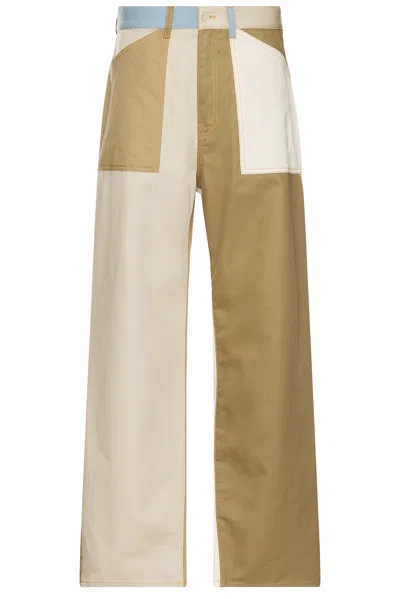 Givenchy Relaxed Fit Patchwork Denim Jeans in Multicolor in Tan Self 1: 100% cotton Self 2: 55% cotton 45% linen. Dry clean only. Zip fly and button closure. 3-pocket design. Midweight rigid denim with patchwork design. Item not sold as set. GIVE-MJ48. BM51J55YCN960. About the designer: Hubert de Givenchy founded his namesake fashion house specializing in Haute Couture and ready-to-wear in 1952. No sooner did it open than Givenchy earned a reputation for breaking with the fashion codes of its time. Today, the house is synonymous with aristocratic elegance, sensuality and fresh romanticism. Its legacy continues through the modern approach of its newest Creative Director Matthew M. Williams, appointed in June 2020.