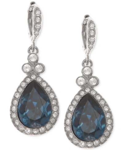 GIVENCHY Pave Drop Earrings In Denim / Silver