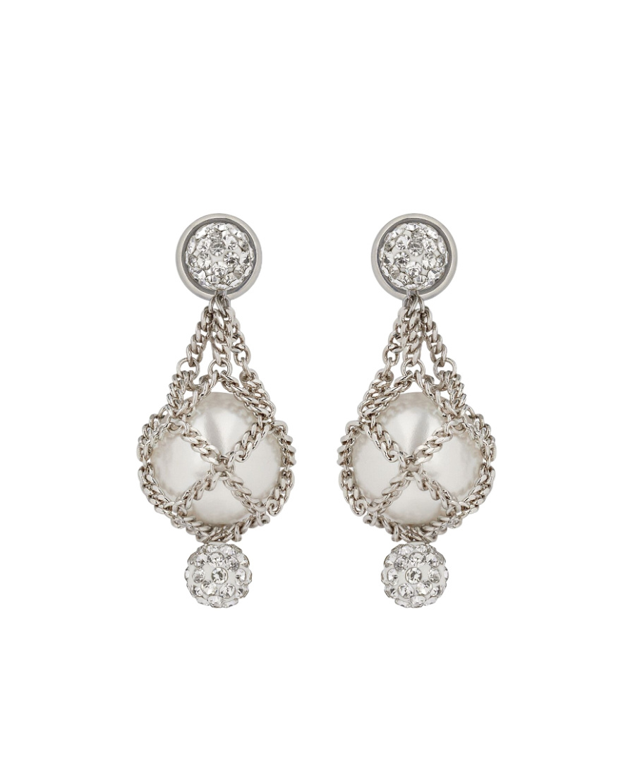 White and silver, set with pearls and crystals, resin pearls in the chain net, sold in pairs.