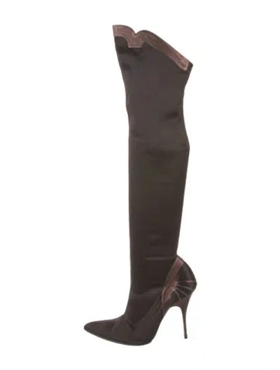 Pre-owned Satin Sock Boots In Brown