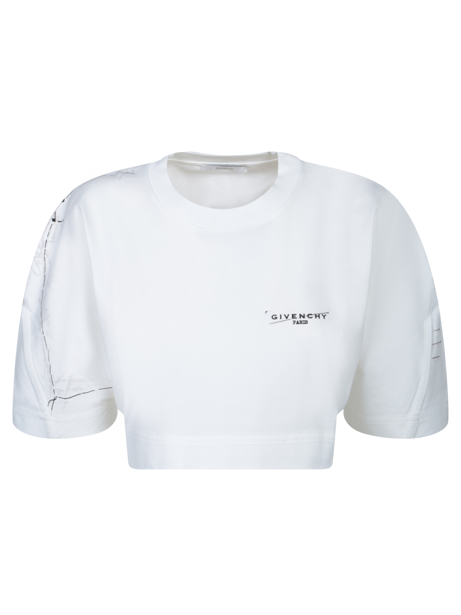 Short sleeves, crew neck, front logo, cropped design with exterior seam details.. Exuding an urban and contemporary aesthetic, this Givenchy cropped T-shirt features innovative details such as exposed stitching that add a touch of originality