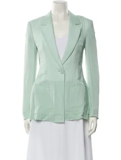 Givenchy Silk Blazer Green Raw-Edge Trim & Pointed Collar Slit Pockets & Button Closure Fit: Jackets by Givenchy typically fit true to size. | Givenchy Silk Blazer w/ Tags in Green, Women's US10, FR42 | L