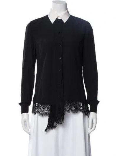 Givenchy Silk Button-Up Top Black Lace Trim Embellishment Long Sleeve with Collar Button Closure at Front Fit: Tops by Givenchy typically fit true to size. | Givenchy Silk Long Sleeve Button-Up Top in Black, Women's US4, FR36 | S
