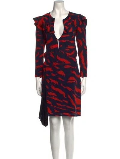 Givenchy Silk Dress Blue & Orange Printed Pleated & Ruffle Accents Three-Quarter Sleeve with V-Neck Concealed Zip Closure at Side Designer Fit: Designed for a slim fit, those with a curvy figure may wish to take one size up. | Givenchy Silk Mini Dress in Blue/Orange, Women's US6, FR38 | M