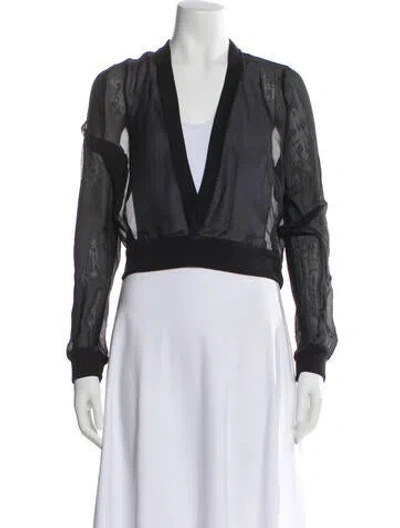 Givenchy Silk Top Black Patterned Long Sleeve with V-Neck Fit: Tops by Givenchy typically fit true to size. | Givenchy Silk Patterned Top in Black, Women's US4, FR36 | S