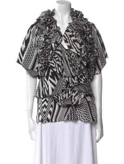 Givenchy Silk Blouse Black Printed Ruffle Embellishment Short Sleeve with V-Neck Fit: Tops by Givenchy typically fit true to size. | Givenchy Silk Printed Blouse in Black, Women's S