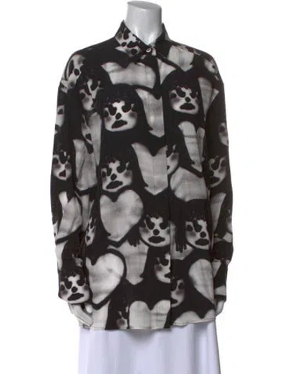 Givenchy Silk Button-Up Top Black Printed Long Sleeve with Collar Button Closure at Front Fit: Tops by Givenchy typically fit true to size. | Givenchy Silk Printed Button-Up Top in Black, Women's US8, FR40 | M
