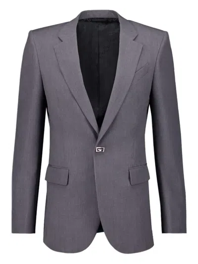 grey front button fastening two side flap pockets long sleeves buttoned cuffs