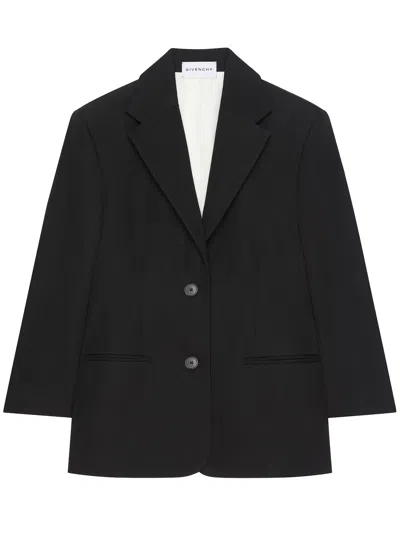 Structured jacket in black grain de poutre wool with three -quarter sleeves and reversed reverss with front pocket buttons and an elegant and feminine garment perfect for sophisticated silhouettes discover it now