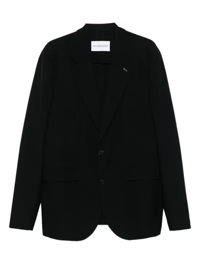 black notched lapel front button fastening long sleeves side pockets straight hem