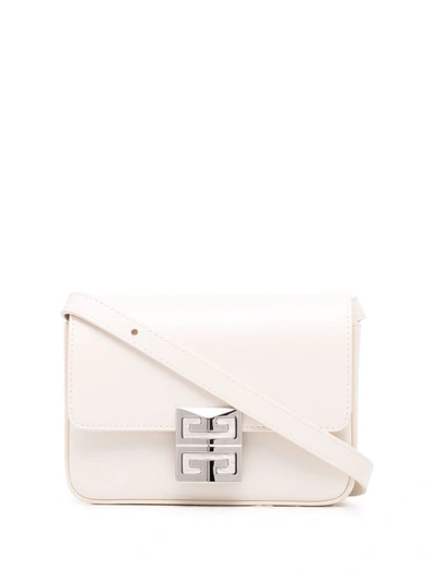 White leather small 4G box bag from GIVENCHY featuring signature 4G motif, silver-tone hardware, embossed logo to the rear, adjustable detachable shoulder strap, front flap closure, slip pocket to the rear, main compartment, internal slip pocket and internal logo stamp.