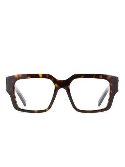 brown tortoiseshell effect clear lenses logo detail square frame These glasses come with a protective case. All glasses from FARFETCH are sold as non-prescription frames.
