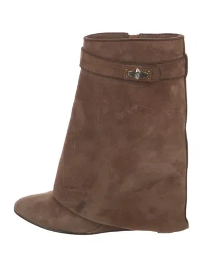 Givenchy Suede Mid-Calf Boots Brown & Neutrals Semi-Pointed Toes Wrap-Around Straps & Concealed Zip Closure at Sides Designer Fit: Boots by Givenchy typically run a half size small. | Givenchy Suede Boots in Brown/Neutrals, Women's IT 39 | 9