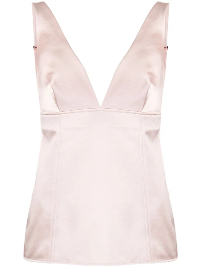 Pink silk V-neck satin top from GIVENCHY featuring satin finish, v-neck, sleeveless, two adjustable shoulder straps, back zip fastening, open back and straight hem.