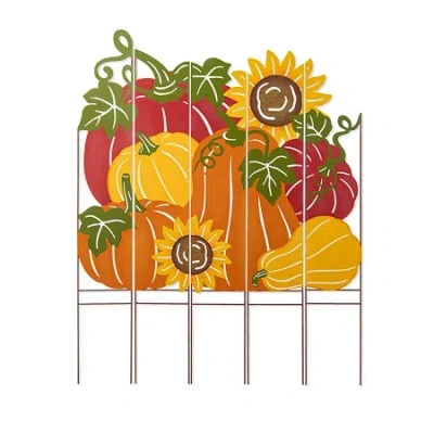 The 41.75"H Fall Metal Pumpkin Patch Combo Yard Stake is a charming and durable garden decoration. Premium material with fine workmanship brings a smooth surface touch and ensures its durability and practicality. It crafted from iron that showcases a delightful array of pumpkins and sunflowers, perfect for adding a festive touch to your outdoor space during the autumn season.Manufacturer Warranty: 1 YearUse: OutdoorMeasurements: .25 Width/Inches, 41.75 Height/Inches, 32.5 Length/InchesWeight (lb.): 7 LbBase Material: 100% IronCare: Wipe CleanMaterial: IronCountry of Origin: Imported
