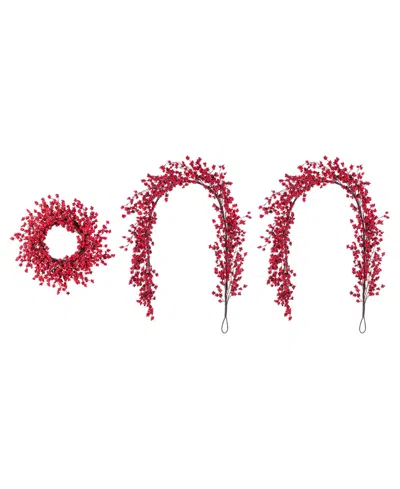 Christmas Red Berries Garland And Matched Wreaths, Set Of 3 In Multi
