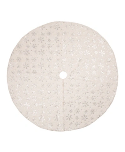 GLITZHOME Plush Snowflake Christmas Tree Skirt In Beige