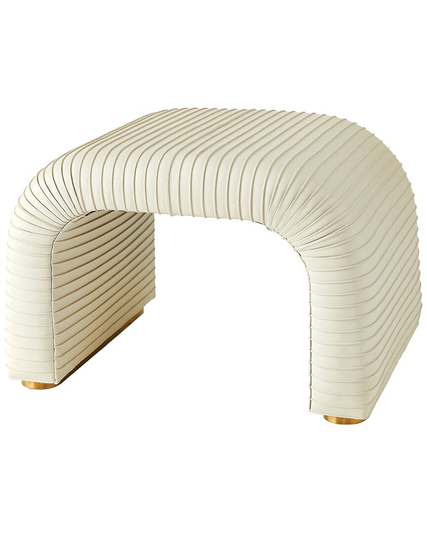 Color/Finish: White Satin Brass Design Details: Designed To Complement The Best-Selling Cade Daybed, The Cade Stool Features A Sculptural Shape, Hand-Pleated Leather, And Satin Brass Feet. Scaled Perfectly For Additional Seating In Any Room. Measurements: 27In X 21.5In X 18In Natural Cow Leather, Brass, Hardwood Dust With Dry Cloth, Leather Cleaner/Polish If Necessary Assembly Required Imported