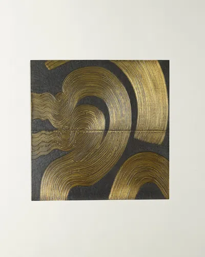 Inspired by natural water movements, The Currents Wall Panels are brass clad on wooden substructure. Panels can be arranged in multiple configurations. Handcrafted decorative wall art. Part of a series of four panels. Wood composite. Approx. 24"Sq. x 2.5"D. For indoor use only. Imported. Boxed weight, approximately 20.5 lbs.