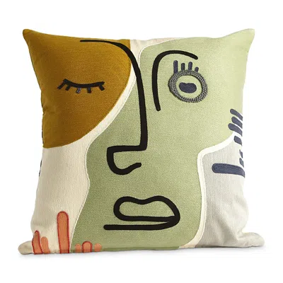 Inspired by the work of Matisse, The Petey Pillow is embroidered, handcrafted and color-blocked with bead accents. Handcrafted pillow. Includes down insert. Cotton/beads/acrylic. Approx. 20"Sq. Imported.