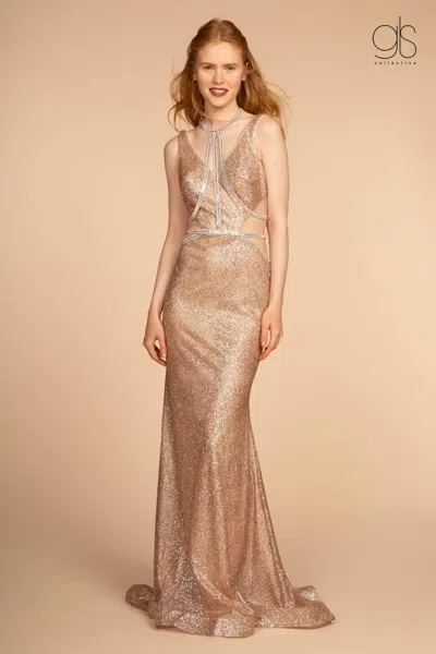 GLS Prom Long Open Back Cut Out Evening Gown In Gold