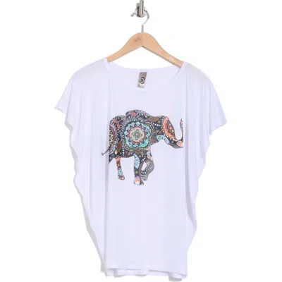 Dolman Sleeve Tee In White Elephant Motif Print