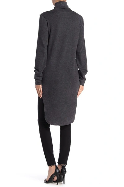 GO COUTURE Turtleneck High-low Tunic Sweater In Charcoal Elephant Up Dnu