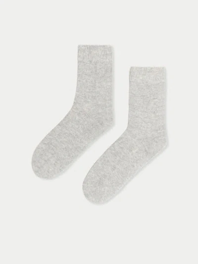 Made from an indulgently soft Mongolian cashmere, these socks are exquisitely soft and a real treat for your feet. Its extreme warmth, yet its delicate softness against the skin. Cashmere socks should not be worn with shoes, boots or trainers as the delicate fibres of Cashmere may be damaged by friction. The colour of our cashmere is just as nature intended. Each shade is determined not by dye, but by the ecological diversity and deep-rooted culture of the Mongolian herder communities. Our untreated fibers mean a more opulent quality, naturally rich and vivid tones, and a harmonious affinity for the world around us, with less water, energy and carbon emissions versus chemically treated cashmere. *Product colour may vary due to lighting. Please refer to the simple studio shots for the most accurate colour 2 ply 75% cashmere, 12% polyester, 10% spandex, 3% rubber Plain knit Lightweight